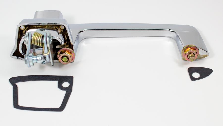 Reproduction outside door handle with chrome push button for the 67-70 Dodge Plymouth A-Body & 68-70 Dodge Plymouth B-Body models. Each handle is made from high quality materials and features correct as original chrome finish. Includes mounting harware and gaskets.