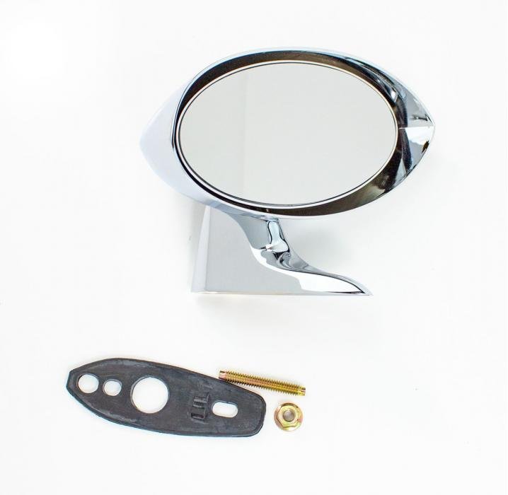Reproduction outside door sport mirror for the 70-76 Dodge / Plymouth A-Body models. Each high quality mirror features correct as original exterior chrome finish, gasket and hardware.