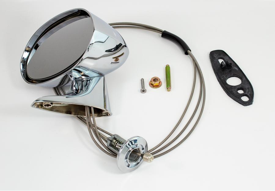 Reproduction outside door sport mirror for the 70-76 Dodge / Plymouth A-Body models equipped with the remote mirror option. Each high quality mirror features correct as original exterior chrome finish, gasket and hardware.