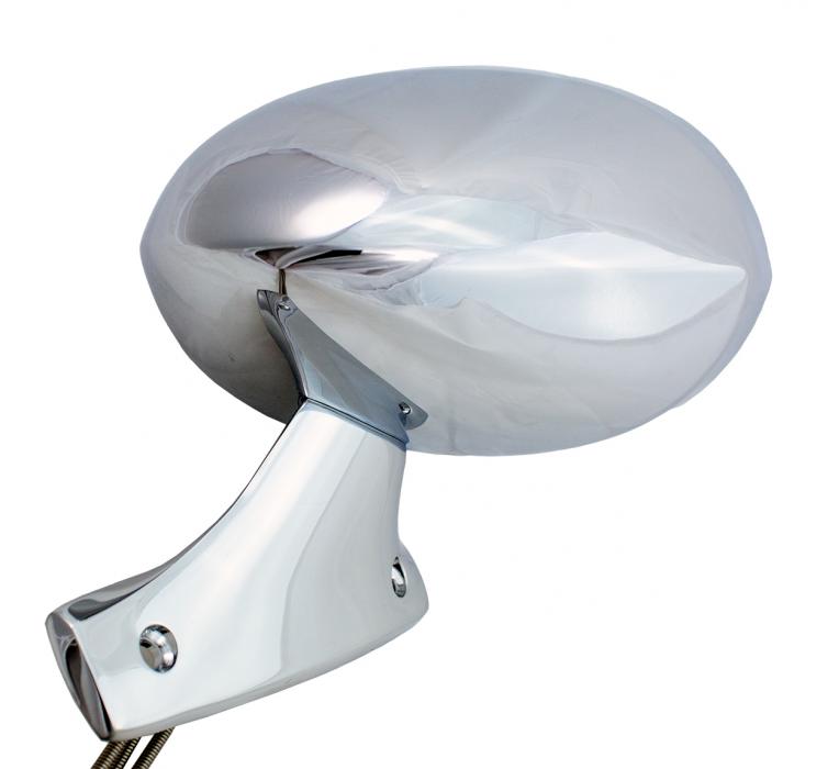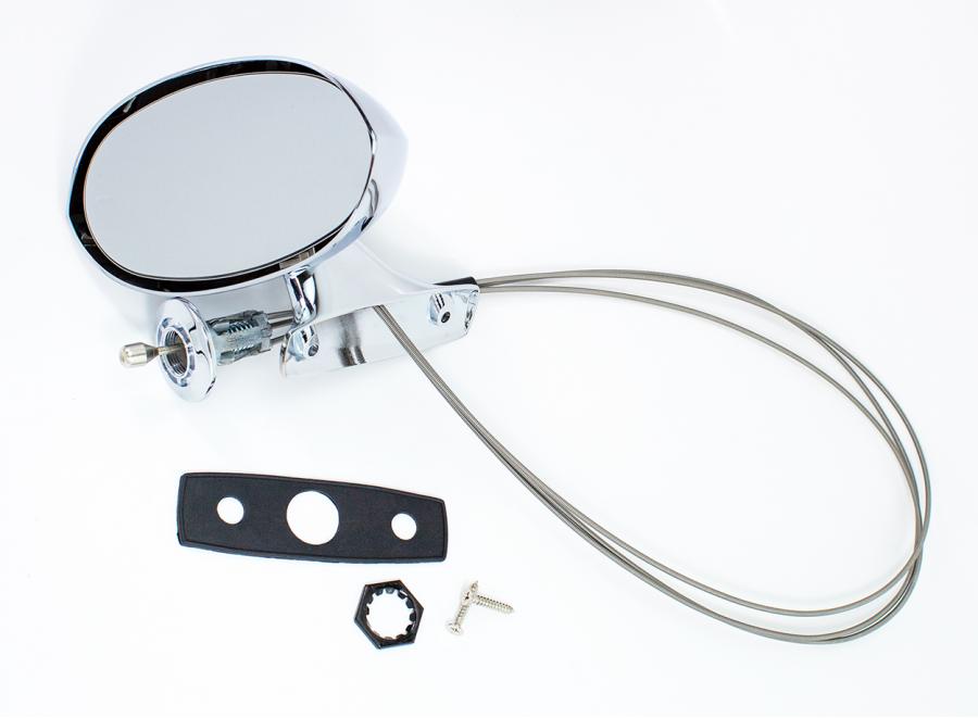 Reproduction OE style exterior chrome remote sport mirror for 70 E-Body models. Each high quality mirror features correct as original chrome finish, gasket and hardware.