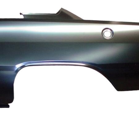 New reproduction quarter panel for the 1967 Dodge Dart. Each quarter panel is manufactured from high quality, heavy gauge steel on our exclusive new tooling and feature, depending on application, correct as original body lines, braces, marker light holes, and antenna cut-out. Unlike lesser quality competitors parts, AMD quarter panels look great and fit even better! Like all AMD parts, this quarter panel will arrive in a black EDT Coat finish and will require standard prep work prior to paint.