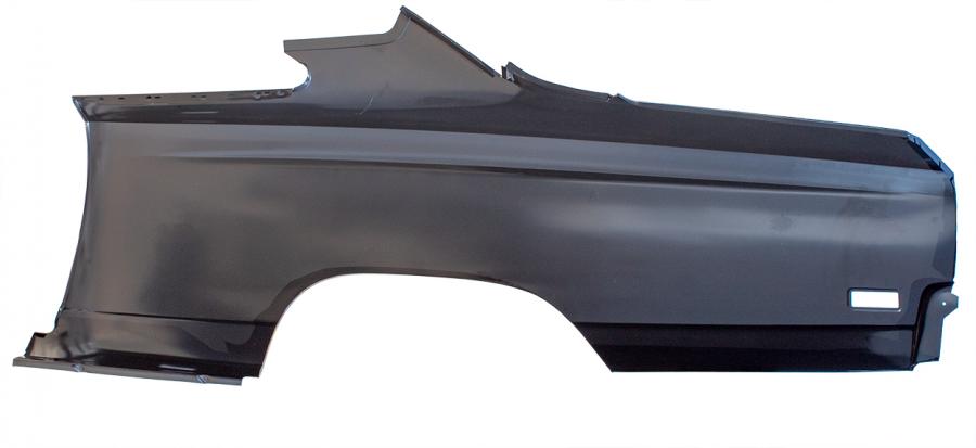 New reproduction quarter panel for the 1969 Plymouth B-Bodies. Each quarter panel is manufactured from high quality, heavy gauge steel on our exclusive new tooling and feature, depending on application, correct as original body lines, braces, marker light holes, and antenna cut-out. Unlike lesser quality competitors parts, AMD quarter panels look great and fit even better! Like all AMD parts, this quarter panel will arrive in a black EDT Coat finish and will require standard prep work prior to paint.