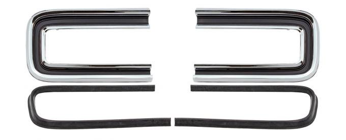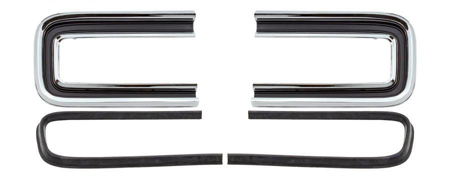 Reproduction OE style taillight bezels / "C" moldings for the 66-67 Dodge Charger. Each bezel features the correct shape, size, contour and bright chrome finish like original.