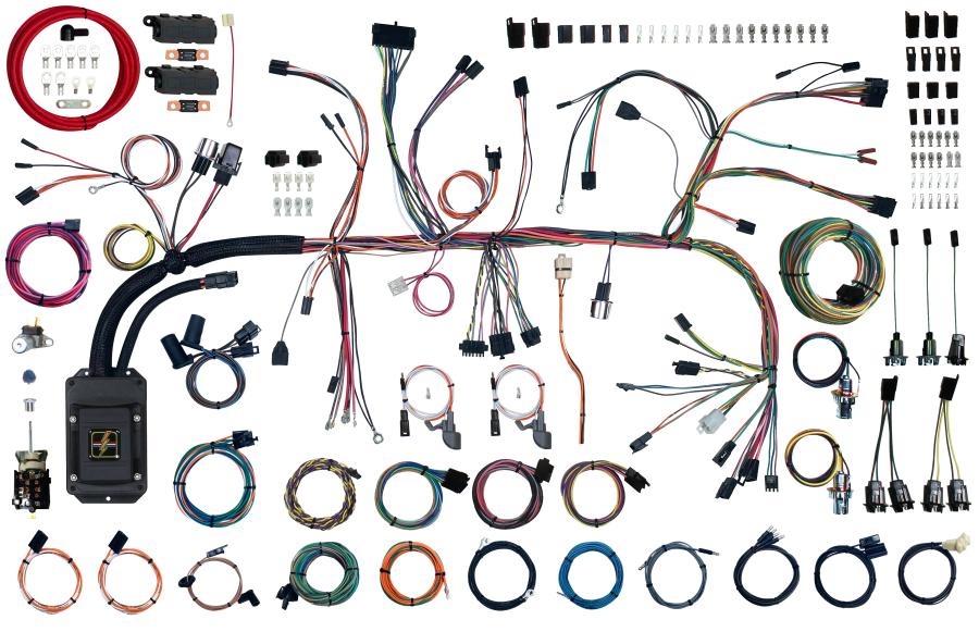 Original-Style Connectors: American Autowire’s exclusive use of original connector bodies preserves factory levels of fit and finish. The rear body harness incorporates correct lamp sockets for stop/tail, back-up, and side marker lamps, fuel tank sender, license plate lamp with through-floor grommets, C-pillar courtesy lamp extensions, and a third brake light feed.