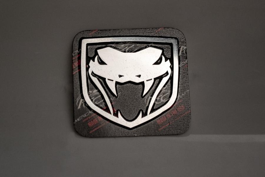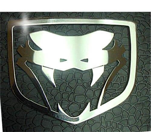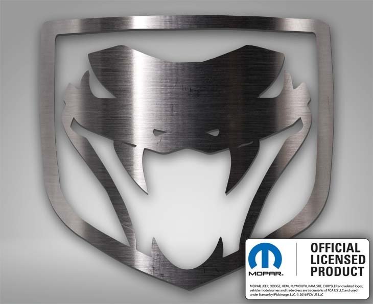 You'll want this one, our Mopar Officially Licensed Viper Fangs Emblem 1Pc. It's laser-cut from premium stainless steel, then polished to a mirror-like finish. This emblem can be placed anywhere you like, interior, exterior or engine bay. Emblem dimensions are 2-1/8"x 2".