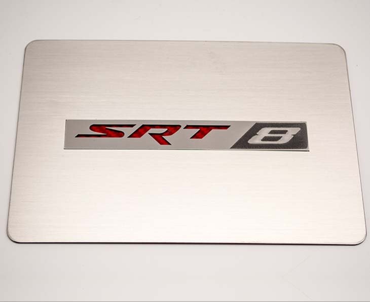 Set your car apart, install our Challenger Brushed Fuse Box Cover Plate with SRT 8 Logo. This is an add on accessory designed to fit over our stainless steel fuse box cover and dress up your Challenger engine bay like it was designed to win every show it has ever been entered in.