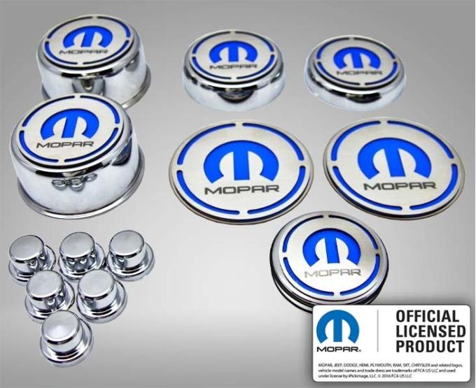 Turn your factory shock towers and engine fluid caps into conversation starters with our Dodge Challenger MOPAR Cap Covers set. Our cap sets are triple chrome plated with stainless steel caps and the MOPAR vinyl insert is made from the highest quality. These trim pieces are designed to fit all 2008-2019 Dodge Challengers over the stock fluid caps and shock tower domes adding a standout look that shows you know how to dress up your car.