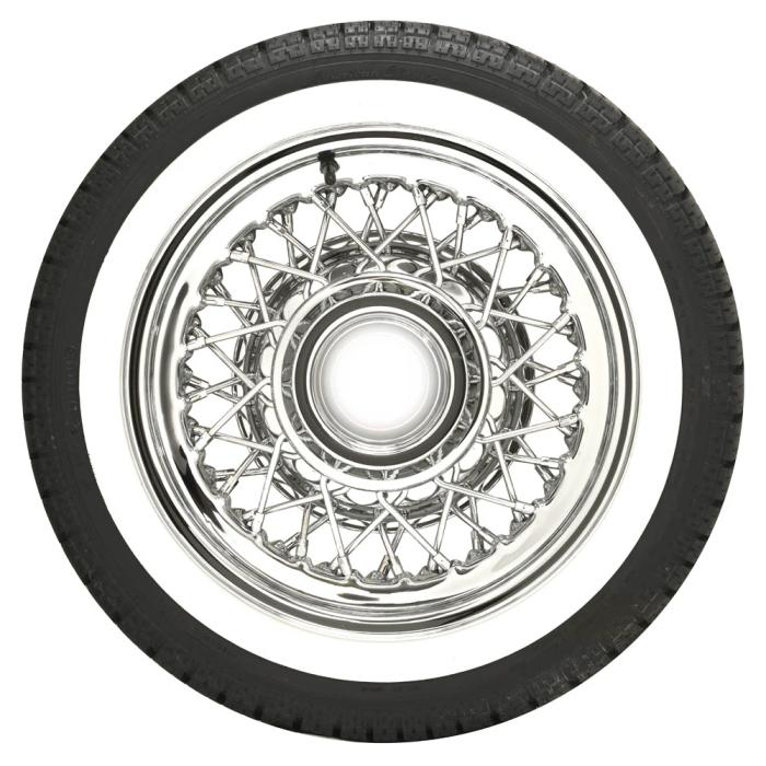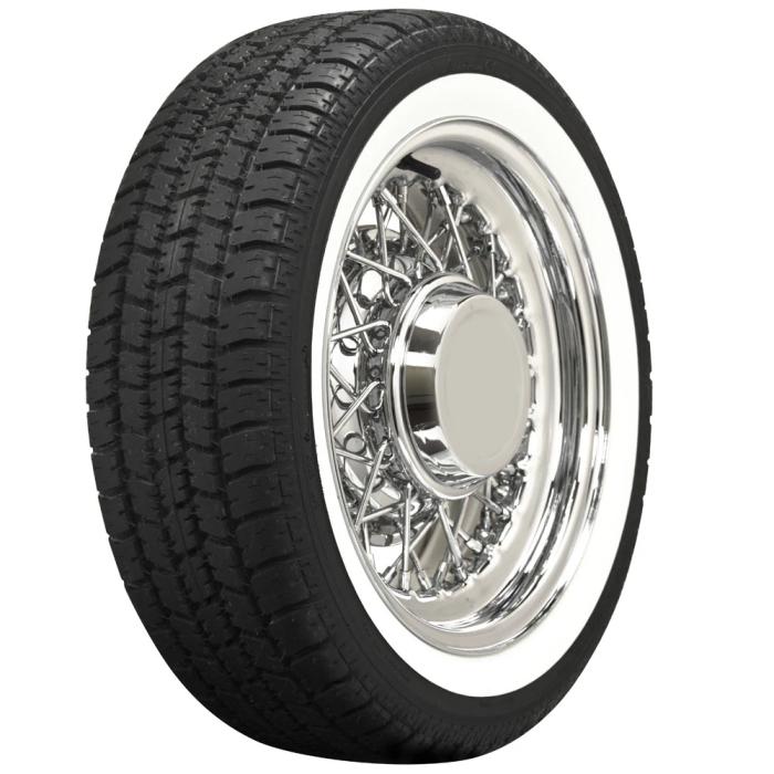 This product features a genuine wide whitewall sidewall style. This means that the bright white rubber is added directly to the tire sidewall during initial construction of the carcass, resulting in a truly integrated, high-quality product after vulcanization. Wide whitewall tires were a very popular choice from the 1930's through the end of the 1950's, and were eventually phased out of mainstream production by 1962. Originally, wide whitewall tires featured a bias ply construction, Coker Tire offers these tires in both original style bias ply and modern radial construction.