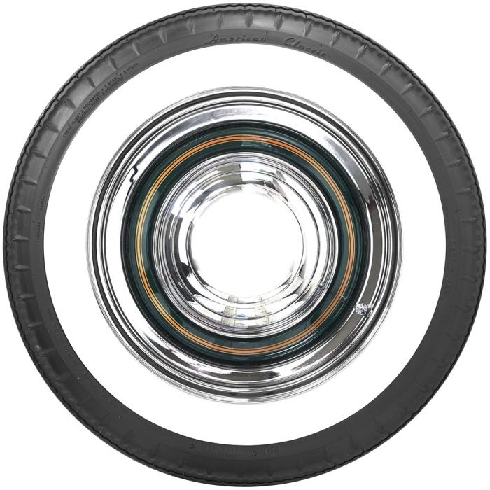 Our line of American Classic radial tires includes P-metric radials (such as 235/75R15) and our famous "bias look radial" (such as 670R15). We offer American Classic radial tires in wide whitewall, narrow whitewall, and black sidewall in select sizes, developed specifically for 1940's, 1950's and 1960's classic cars. These tires feature a classic tread design and a beautiful sidewall that's built into the tire from day one of production.