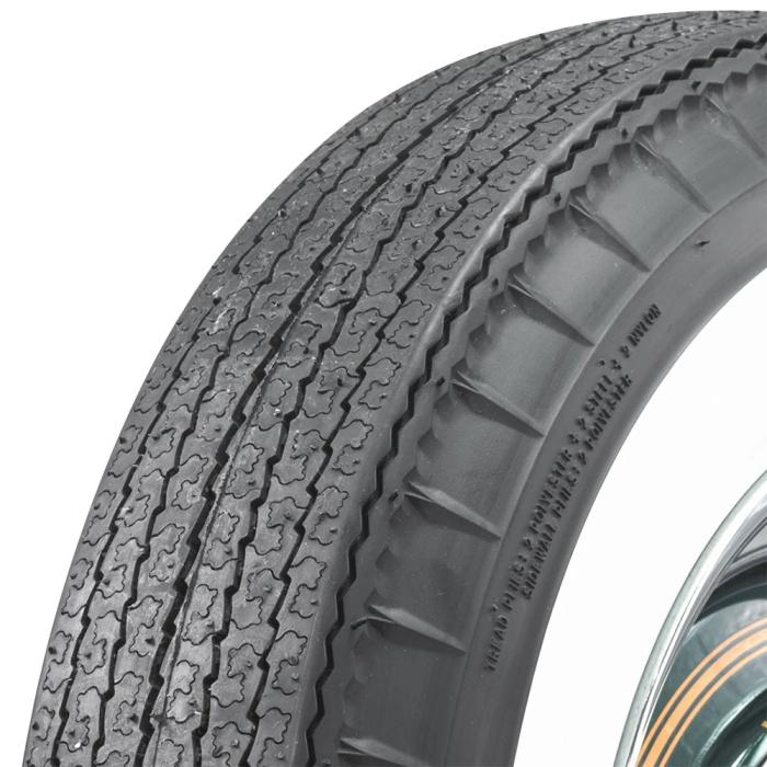 This product features a genuine wide whitewall sidewall style. This means that the bright white rubber is added directly to the tire sidewall during initial construction of the carcass, resulting in a truly integrated, high-quality product after vulcanization. Wide whitewall tires were a very popular choice from the 1930's through the end of the 1950's, and were eventually phased out of mainstream production by 1962. Originally, wide whitewall tires featured a bias ply construction, Coker Tire offers these tires in both original style bias ply and modern radial construction.