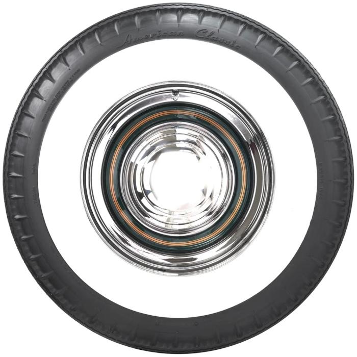 This product features a genuine wide whitewall sidewall style. This means that the bright white rubber is added directly to the tire sidewall during initial construction of the carcass, resulting in a truly integrated, high-quality product after vulcanization. Wide whitewall tires were a very popular choice from the 1930's through the end of the 1950's, and were eventually phased out of mainstream production by 1962. Originally, wide whitewall tires featured a bias ply construction, Coker Tire offers these tires in both original style bias ply and modern radial construction.