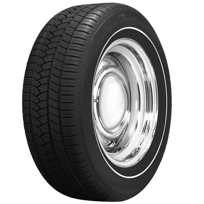 Our line of American Classic radial tires includes P-metric radials (such as 235/75R15) and our famous "bias look radial" (such as 670R15). We offer American Classic radial tires in wide whitewall, narrow whitewall, and black sidewall in select sizes, developed specifically for 1940's, 1950's and 1960's classic cars. These tires feature a classic tread design and a beautiful sidewall that's built into the tire from day one of production.