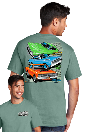 TDC 293 Dart 3 Car This killer laurel green shirt sports 3 Dodge Darts from the 68 Hemi, 69 GTS, and 70 Swinger, this will impress your mopar heads!