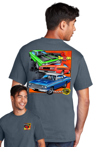 Who doesn't love the Demon / Duster chassis. Pure Muscle at its finest! This steel blue shirt rocks 3 factory color options to ensure the enthusiasts approve!