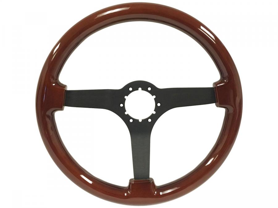 S6 Sport Wood series come in real mahogany wood finish with high quality black center finish and solid spoke design. It features a 14 in. diameter with a 2.5 in. depth for turn signal clearance.