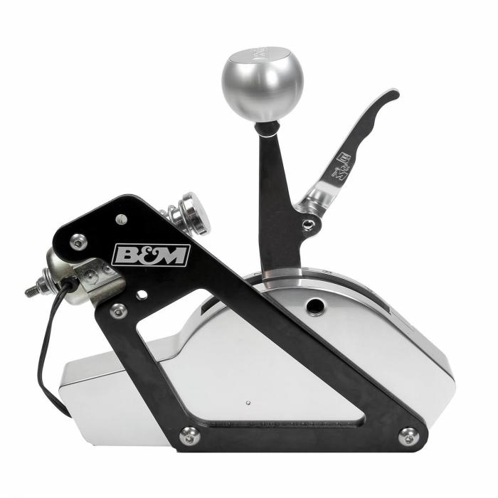This B&M electric shift solenoid fits Pro Bandit and Street Bandit shifters. Built with 5052 aluminum brackets and heavy duty solenoids to provide positive and consistent 1-2 shifts. The brackets are mil-spec (military specification) black anodized with laser engraving for a clean, stealthy appearance and the low amperage draw will cause no charging concerns when the rounds get faster.