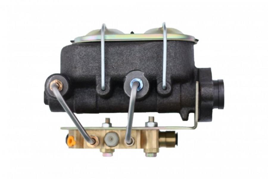 New 1-1/8" bore power brake master cylinder and 4 wheel disc brake proportioning valve. This kit is a nice clean way to add a power, 4-wheel disc brake master cylinder with the correct proportioning valve, mounted for that factory look.