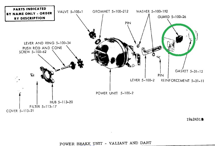 DMT Brake booster boot (called a "guard" in Mopar parts manual). This seals the brake pedal linkage to the firewall.