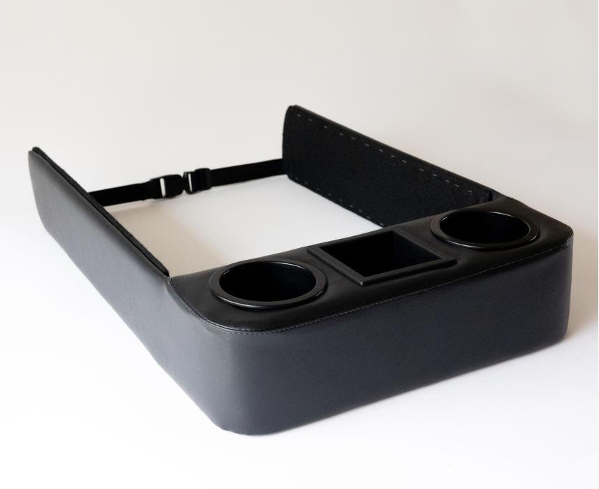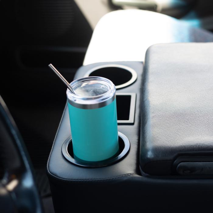 Our large-sized drink holders are included with this console, they accommodate virtually all types of soda & energy drink cans, most plastic water bottles and larger coffee cups. The bottom half of our large drink holders have a unique step down shape to allow smaller drink containers a secure hold while the upper half is large enough to hold bigger beverages with larger diameters.
