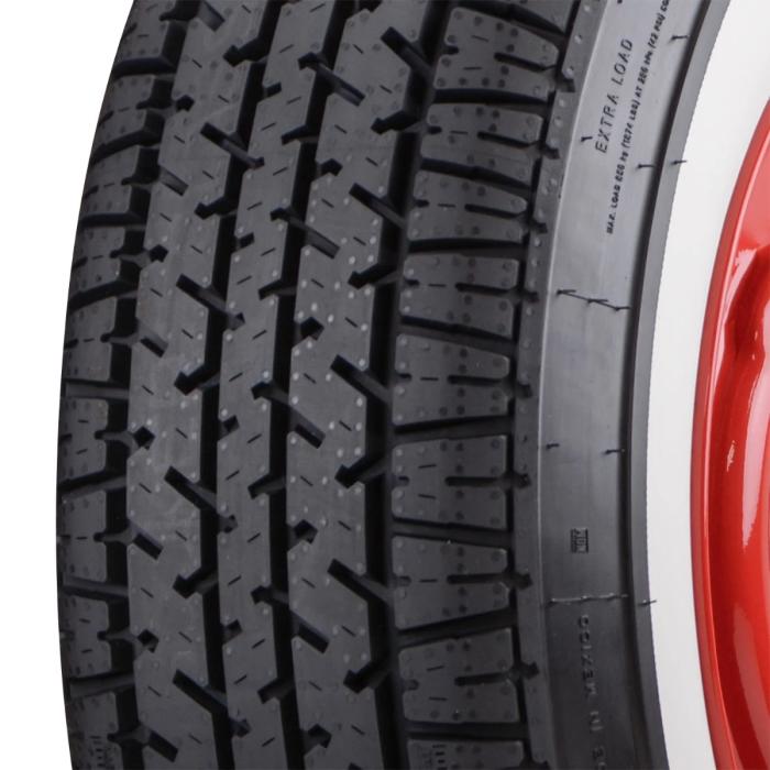 The Coker Classic Star Series 205/75R15 whitewall tire is a modern radial tire with best-in-class speed, load and traction ratings. This tire features a 2.50-inch whitewall, which is built into the tire from day one for a long-lasting tire that offers the perfect look for your classic car. The wide whitewall is perfect for '40s, '50s and '60s classic cars, and the 205/75R15 sizing is a direct replacement for 670-15 and F78-15 bias ply tires. Coker Classic Star Series tires feature a 480AA UTQG rating, giving them excellent treadwear, traction and temperature control. Another best-in-class rating is the T speed rating (118mph), as well as XL load rating, thanks to a reinforced sidewall. The low-noise tread looks and performs nicely, and this tire is DOT approved and E-marked for the European market. You won't find a better whitewall radial tire on the market, you have our word on it!
