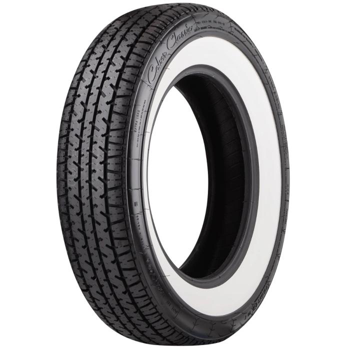 The Coker Classic Star Series 185/80R13 whitewall tire is a modern radial tire with best-in-class speed, load and traction ratings. This tire features a 2.875-inch whitewall, which is built into the tire from day one for a long-lasting tire that offers the perfect look for your classic car. The wide whitewall fits many American compact cars from 1961 and earlier, and the 185/80R13 sizing is a direct replacement for 725-13 and also fits on cars that came with 650-13 bias ply tires. This includes Chevy Corvair, Ford Falcon and many European cars that came from the factory with 13-inch wheels. Coker Classic Star Series tires feature a 480AA UTQG rating, giving them excellent treadwear, traction and temperature control. Another best-in-class rating is the T speed rating (118mph), as well as XL load rating, thanks to a reinforced sidewall. The low-noise tread looks and performs nicely, and this tire is DOT approved and E-marked for the European market. You won't find a better whitewall radial tire on the market, you have our word on it!
