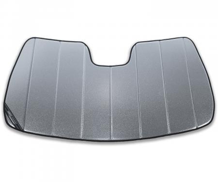 This premium quality, custom patterned folding heat shield has a silver reflective fabric on the outer side, soft felt on the inside and is held in place with the vehicle sun visors with an accordion style fold for storage when not in use.