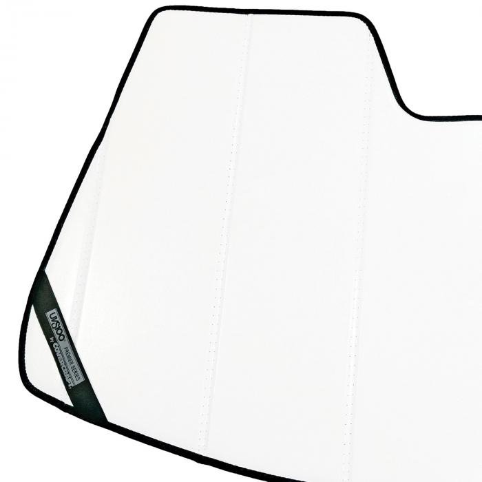 Custom-fit to your exact windshield and designed to protect your vehicle from UV damage while dramatically lowering the vehicle temperature. Elegant black backing and includes a free storage bag.