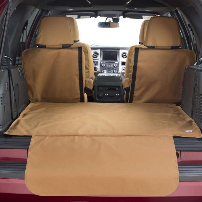 Custom Cargo Area Liners protect the entire floor area and seat back. Hook & loop strip allows split seats to operate. Made with tough, waterproof, urethane-coated polyester fabric. A fold-out bumper flap is included for additional protection of the bumper area. Custom Cargo Area Liners are perfect for hauling plants, groceries, sports equipment or anything else that you need to protect the cargo are from.