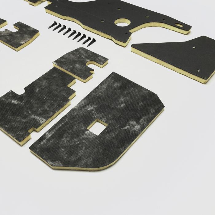 Firewall Insulation - Heavy .100" black cardboard, 1" yellow fiberglass insulation. OE correct RUBBER pins / nails