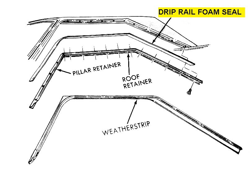 DMT OEM style material drip rail poly seal kit for all 1967-76 A bodies.