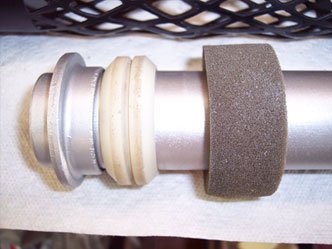 DMT steering column inner shift tube to outer tube spacer / bushing / retainer, charcoal foam seals & clip for 70-73 A, 71-72 B & 70-73 E bodies and 74 Challengers with COLUMN SHIFT AUTOMATIC TRANSMISIONS or STEERING COLUMN LOCKOUT USED ON 1970 VEHICLES ONLY. The charcoal foam seals were used to keep fumes from going up the steering column. They were installed by the factory but disintegrate after 50 years and are rarely seen or found in the column. The large foam goes between the outside of the shift tube and the column tube. The small foam goes on the steering column shaft and is between the shaft and the inside of the shift tube.