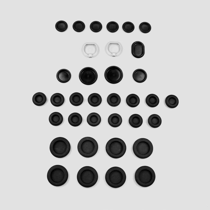 DMT 35pc body plug set for 73-74 B bodies EXCEPT CHARGER. Includes lower rear quarter panel extension drain plugs and firewall clutch rod oval plug.