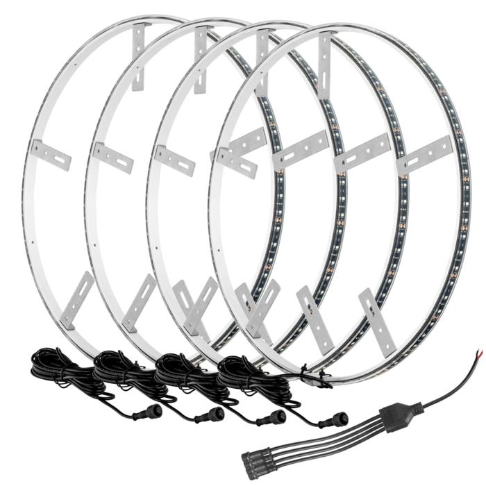 | Contents | (4x) Aluminum Wheel Rings equipped with Premium ORACLE LEDs, (1x) ORACLE LED Illuminated Rocker Switch, (12x) Aluminum Mounting Brackets (3 Per Ring), Installation Hardware, Installation Instructions |