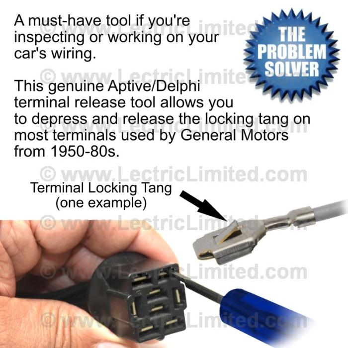 Lectric Limited 1935-2012 American Motors / Chrysler / DeSoto / Dodge / Plymouth / Ford / Mercury / Buick / Cadillac / Chevrolet / GMC / Oldsmobile / Pontiac / Jeep / Studebaker Terminal Removal Tool 12094430Lectric Limited 1935-2012 American Motors / Chrysler / DeSoto / Dodge / Plymouth / Ford / Mercury / Buick / Cadillac / Chevrolet / GMC / Oldsmobile / Pontiac / Jeep / Studebaker Terminal Removal Tool 12094430Lectric Limited 1935-2012 American Motors / Chrysler / DeSoto / Dodge / Plymouth / Ford / Mercury / Buick / Cadillac / Chevrolet / GMC / Oldsmobile / Pontiac / Jeep / Studebaker Terminal Removal Tool 12094430
