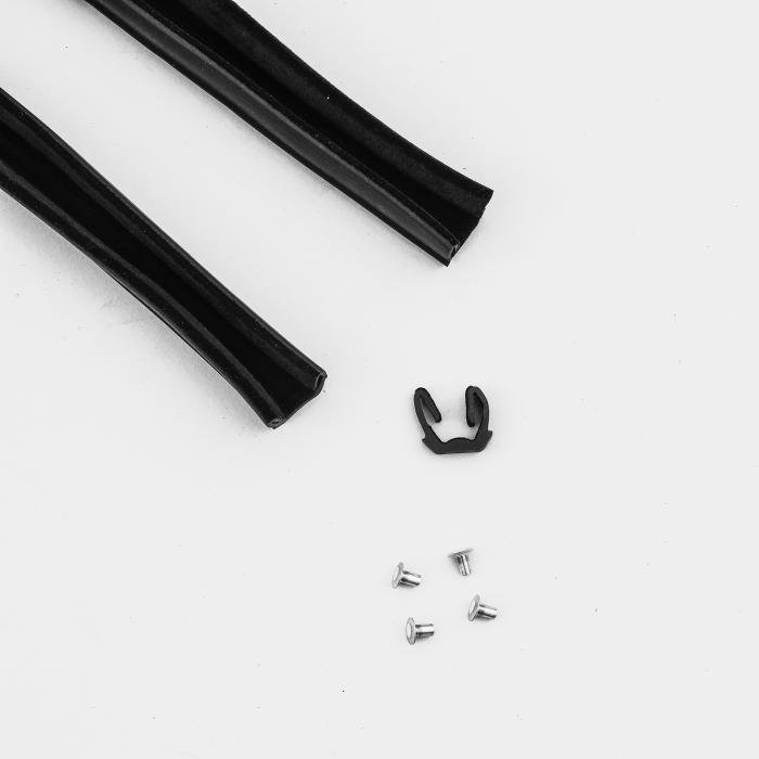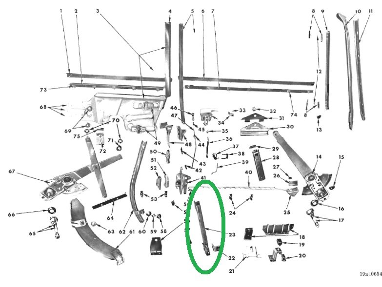 DMT 2pc lower lock side door glass run channel guide for 66 B bodies; Belvedere, Charger, Coronet & Satellite 2DHT. These line the metal channel that guides the rear edge of the door glass. See Mopar Parts Manual diagram.