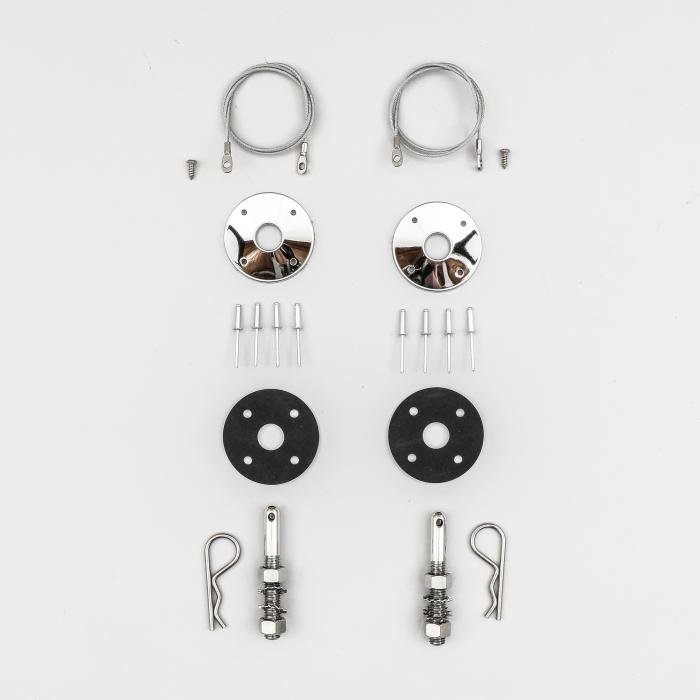Also have the 6" rubberized lanyard sets used on fiberglass lift off hood cars.