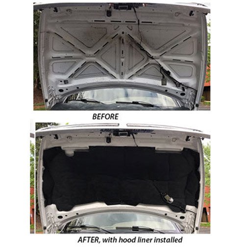 Automotive black matte faced, gray-black insulation very similar in density and thickness to OE molded pad for a fraction of the price of a molded hood pad.