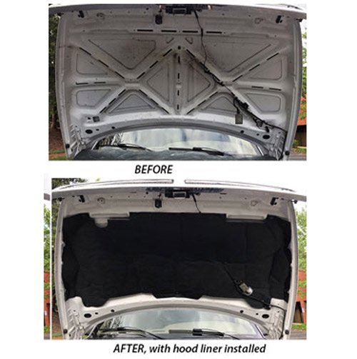 Automotive black matte faced, gray-black insulation very similar in density and thickness to OE molded pad for a fraction of the price of a molded hood pad.