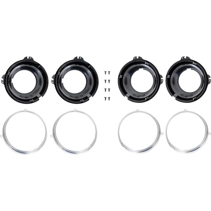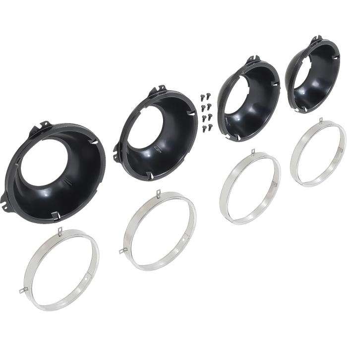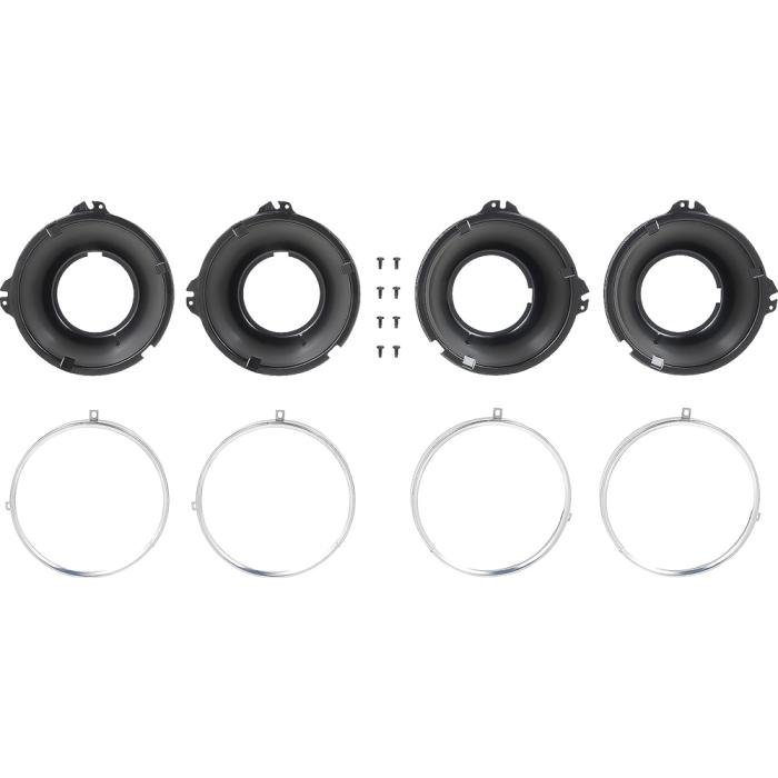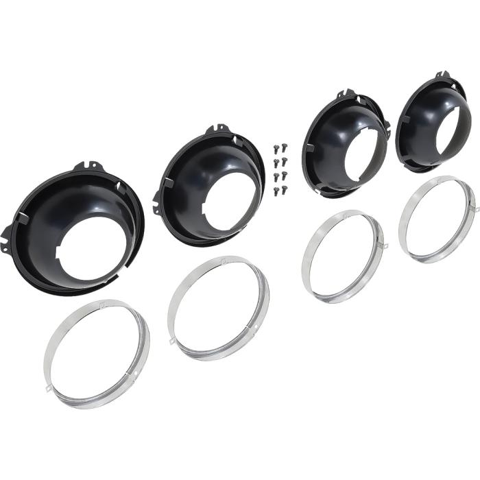 OER® reproduction of the original headlamp mounting buckets and headlamp mounting rings designed for use on various GM vehicles including 1958-72 Chevrolet and GMC pick up models. Each headlamp bucket is manufactured in stamped steel in the correct factory configuration for an exact replacement. Also includes a set of headlamp trim rings that install over the headlamp bulb. Includes 4 headlamp buckets, 4 headlamp trim rings and attaching hardware for installation. 8 piece set.