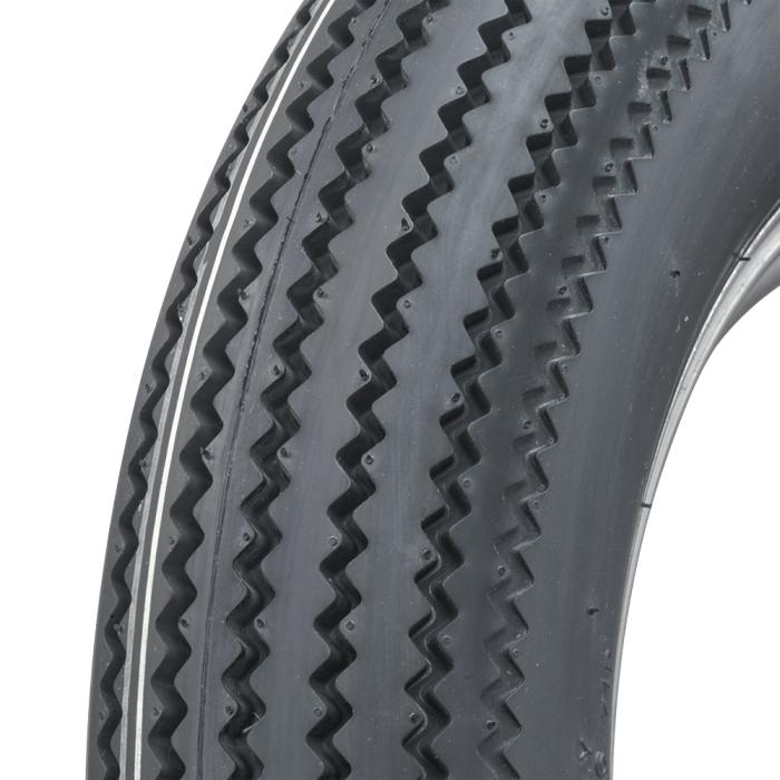 Like many of the tires we offer, Firestone Deluxe Champion Motorcycle tires serve two purposes. It's an authentic tire for American motorcycle restorations from the 1930s and '40s, and it also appeals to custom motorcycle builders seeking the vintage look. The deep tread and smooth sidewall with raised black Firestone lettering is perfect for many styles of motorcycles, from stock Harley Davidsons to modified Honda, BSA, Triumph and many more! Restored classics, choppers, bobbers, cafe racers and much more. This tire covers it all and is available in seven sizes to fit 16-, 18- and 19-inch wheels. Sometimes called Firestone Champion Deluxe in other parts of the world, these tires are becoming insanely popular with custom bike builders everywhere.