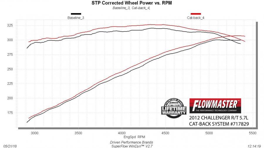 Introducing Flowmaster's new line of FlowFX® Cat-back exhaust systems for the 2009-2014 Dodge Challenger R/T with the 5.7L Hemi engine. This system is perfect for the person looking for an aggressive exterior and moderate interior sound level with all of the performance benefits that you would expect from Flowmaster®. Features include full stainless steel construction, dual 2.50-inch mandrel-bent tubing flowing into a Scavenger Series® X-Pipe cross-over for maximum scavenging and a deep unique sound. Other features include a pair of FlowFX "straight-through" mufflers for maximum performance with a deep aggressive sound. The mandrel-bent stainless steel tailpipes utilize the factory hangers and exit within the factory exhaust bezels for a stealthy factory look. The system is covered by Flowmaster's Lifetime Limited Warranty, protecting your investment and giving you peace of mind. Designed for an easy installation, includes all necessary parts, hardware and detailed instructions for an easy installation you can do at home.