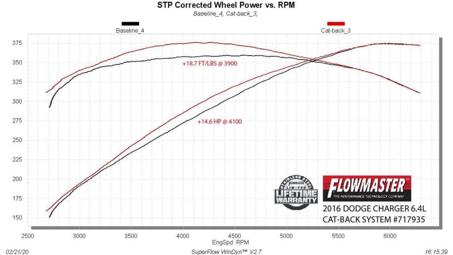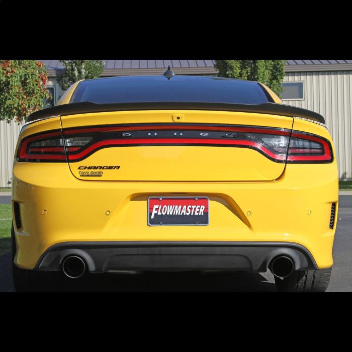 Introducing Flowmaster's new FlowFX® Cat-back exhaust system for the 2015-2023 Dodge Charger Hellcat and SRT cars with the 6.2L or 6.4L Hemi engine and Factory Active Exhaust Valves. This system is perfect for the person looking for a moderately aggressive exterior and interior sound level with all of the performance benefits that you would expect from Flowmaster®. Features include mandrel bent 3.00-inch stainless steel tubing into the Scavenger Series® X-pipe cross-over for maximum performance and tone, flowing into a pair our new FlowFX "straight-through" mufflers for a deep and powerful sound. The dual 3.00-inch mandrel-bent stainless steel tailpipes retain the Factory Active Exhaust Valves and the system is finished off with a pair of aggressive looking 4.50-inch black ceramic coated 304s stainless steel tips embossed with the Flowmaster name. The large tips exit within the rear bumper valance and gives your car the look that it should have come with from the factory. This system is designed to use the factory hanger locations, includes all necessary parts, hardware and detailed instructions for a relatively easy at home installation.