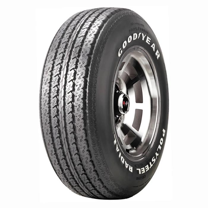 Goodyear is one of the most famous brands in the tire world, and our line of Goodyear classic tires, includes famous muscle car tires like the Goodyear Polyglas and many more from the 1960's and 1970's. Also included in the Goodyear product line is a series of whitewall tires, and various raised white letter and yellow letter tires from the '80s and beyond.