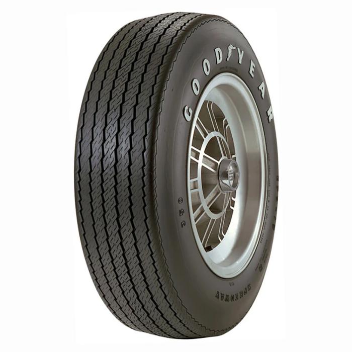 The Goodyear Speedway 350 E70-15 bias ply tire is a famous LARGE LETTER tire that rolled beneath the iconic 1968 Shelby GT350 and GT500 Mustangs. This is a very specific tire, as there were two letter designed produced by Goodyear during this time period. Large letters were used on EARLY 1967 Shelby Mustangs and all 1968 Shelbys.The tires feature authentic sidewall markings and tread pattern and feature a four-ply polyester construction.