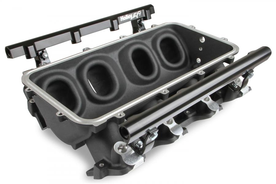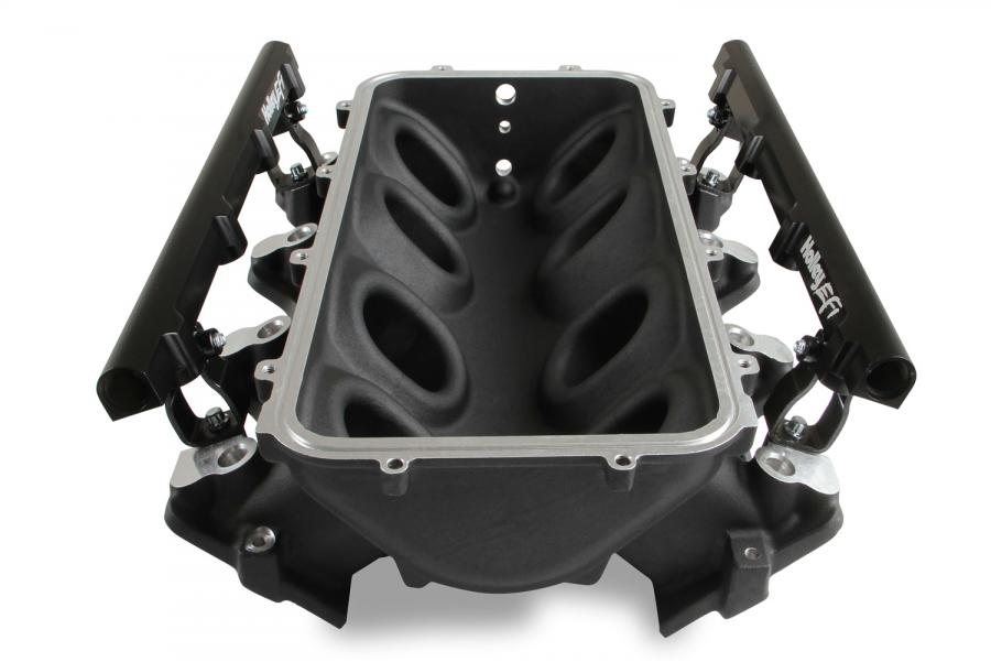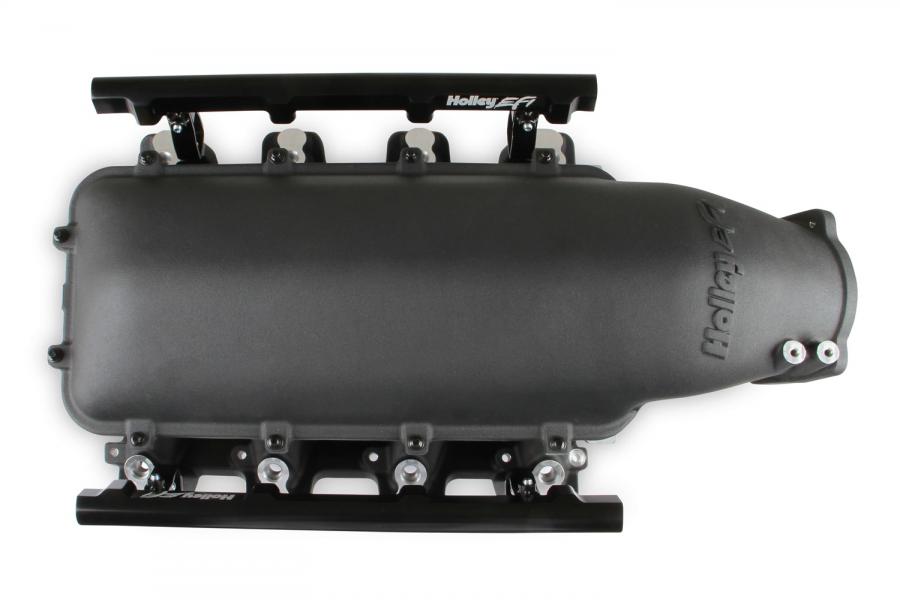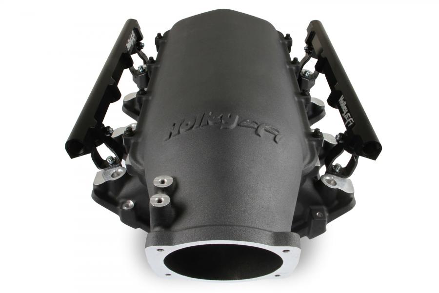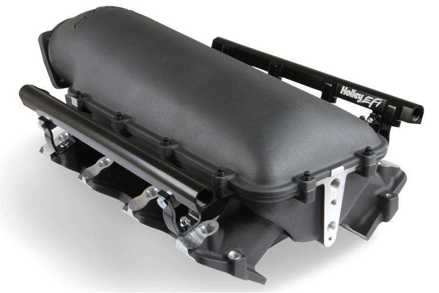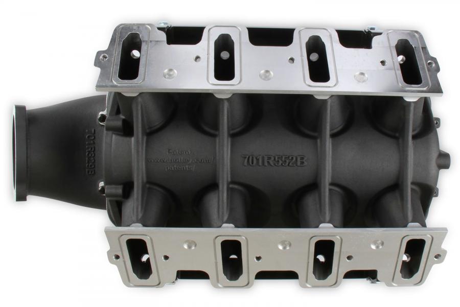 The Holley LS1/2/6 Lo-Ram intake manifold kits are designed for GM LS Gen III and IV engines equipped with GM LS1/2/6 (cathedral port) cylinder heads. These intake manifolds will work with OE or aftermarket cylinder heads. The Lo-Ram intake manifolds are designed for forced induction (supercharged or turbocharged) engine applications and the 105 mm throttle body part number 112-581 or similar models. The base intake manifold is designed with a low height to aid the packaging of a plenum-mounted air-to-water intercooler in a top-entry configuration.