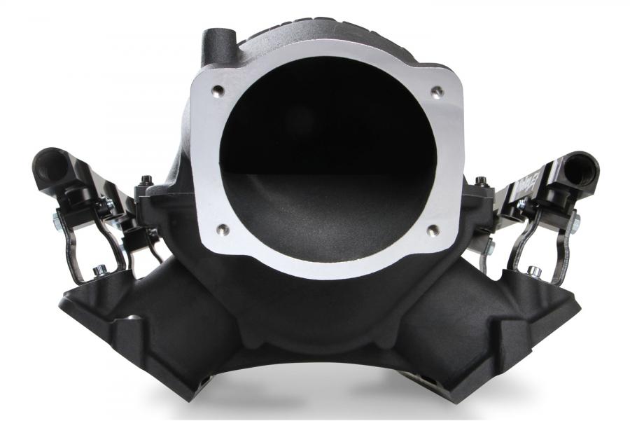 The 300-620 plenum entry configuration is designed to allow the included Hi-Ram 105 mm plenum top to be fitted to a low-profile base intake manifold. The short runner, low-profile base intake manifold intended for forced induction applications was conceived to package with an air to water plenum mounted intercooler with a shorter overall height than possible with other existing intake manifolds.