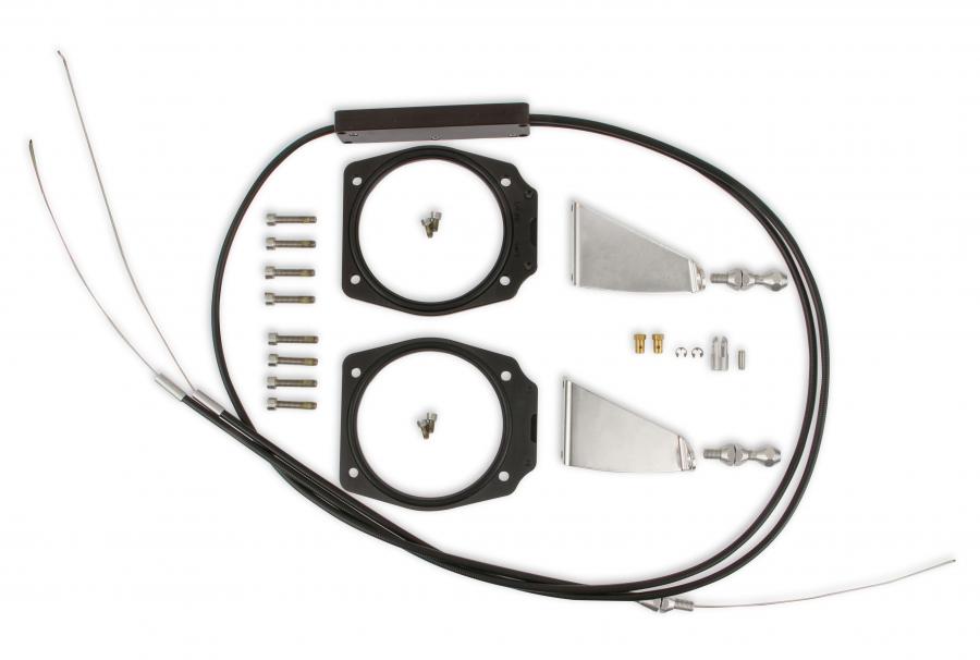The Holley Sniper EFI Dual Plenum Fabricated intake manifolds since their introduction have proven to be a stout performing street intake. The challenge with the dual plenum intake is an effective throttle linkage solution to handle dual cable driven throttle bodies. Holley Sniper EFI to the rescue! The Holley Sniper EFI throttle linkage kit for our Duel Plenum fabricated intake manifolds offer a unique solution to solve this problem. Our complete kit provides all brackets, plates, throttle cables, and hardware to offer a complete and seamless installation. Linkage kits are available in a Silver or Black finish and 92mm and 102mm throttle bore diameters to offer solutions for all of our current Dual Plenum Intake Manifolds!