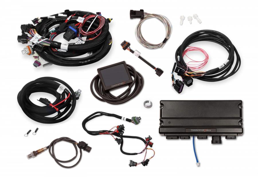 - Includes: 58x/4x LS Engine Main Harness - EV6 Injector Harness - DBW Throttle Body Harness - Terminator X MAX ECU - ECU Main Power Harness - Bosch LSU 4.9 Wideband Oxygen Sensor - Input/Output Harness - and assorted vacuum adapters.