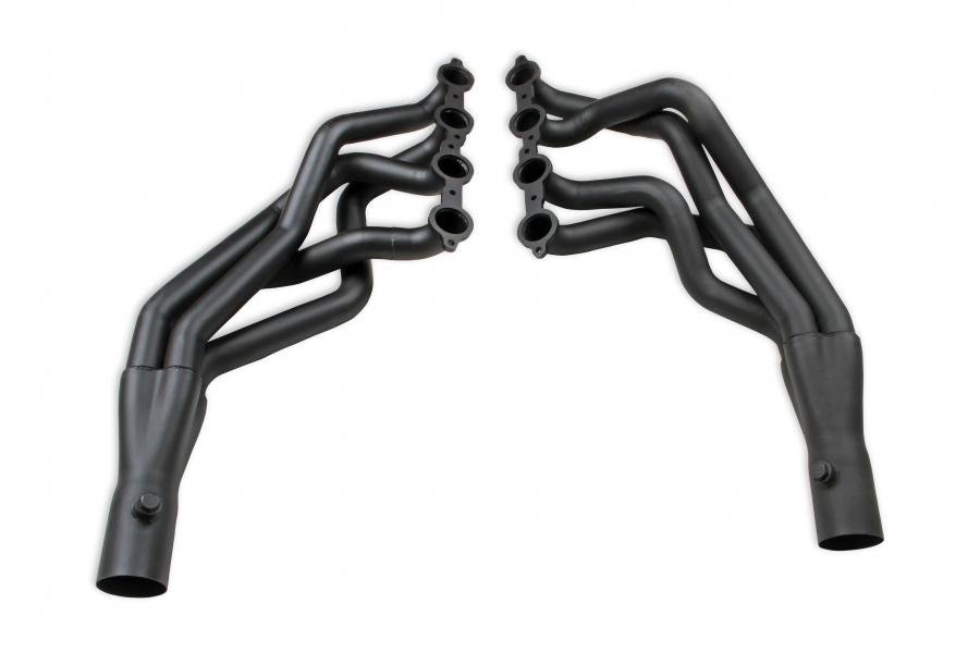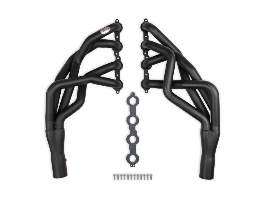 In 1962 Gary Hooker designed a header for his new 409 Chevrolet. He immediately found a demand for this header from other racers in the area. It was not long before Gary had hired employees and was operating Hooker Headers out of a building in South Ontario, CA. The Hooker philosophy was simple - make real, useable power by balancing the intake and exhaust pressure waves. This efficiently expelled all the burnt gases while drawing in the maximum fresh charge of fuel and air. The Hooker team would sometimes spend twice as much time developing a header to find 10% better performance. Slogans such as "Hooker - When Only The Best Will Do" or Hooker Headers - Do It Right The 1st Time" were often used. In the late 1960s and throughout the 1970s Hooker dominated the drag race scene with nearly all NHRA(R) Pro Stock (Super Stock) racers winning with Hooker Headers. Famed racers such as Bill "Grumpy" Jenkins, Bob Glidden and Sox & Martin were regulars in Hooker publicity campaigns. Hooker straight-thru glass pack mufflers were also launched in the early '70s, known as the "Hookermuffler". In the 1970s and 80s, Hooker even dabbled in making such things as bicycles, skateboards, ski's, wheels, motorcycle parts, and fiberglass bolt-ons for trucks and vans, known as "California Glass". This branching led to more "non-race" header and exhaust applications for trucks, vans, motor homes, and economy cars. Hooker had headers for nearly anyone that could benefit from the mileage and performance improvements seen from un-corking your exhaust. Hooker also became famous for engine swap headers for those swapping a big block into a Vega, or maybe a small block Chevy into a Jeep. The famous Hooker heart logo is among the most recognized in the performance aftermarket. It is a symbol of unmatched performance and quality. We hope you "Love Your Hooker Headers"!