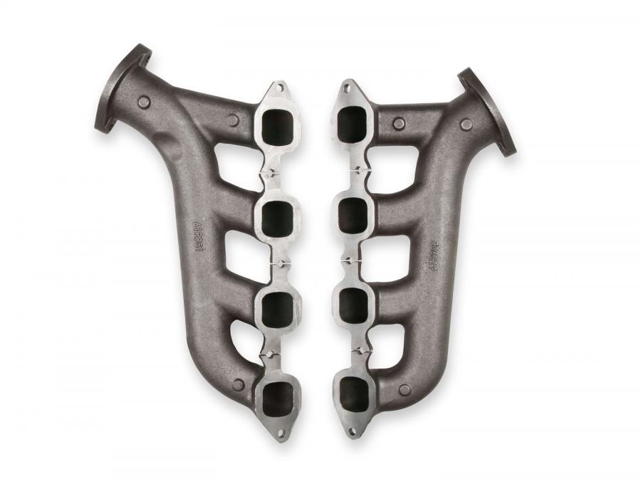 Hooker cast iron exhaust manifolds have been designed to hug close to the engine block so they fit into a wide variety of replacement and engine–swap applications. Their contoured design aims the exhaust directly at the exit port for improved flow. Being cast iron means they will provide years of leak–free performance with less under hood noise than traditional headers. Plus, their shorty design means you can route exhaust tubing close to your frame/floor pan for maximum ground clearance. Hook up your GM LS engine with Hooker cast iron Manifolds today!